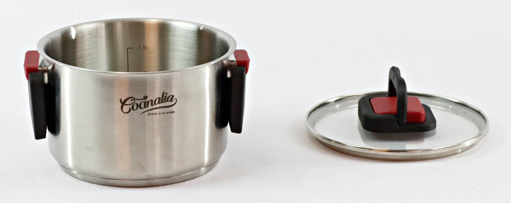 Disfruta de la calidad y resistencia de la olla Cocinalia, fabricada en acero inoxidable calibre 18/10 que garantiza durabilidad y un excelente rendimiento en la cocina. Su diseño moderno con asas en rojo y negro aporta seguridad y estilo, mientras que la tapa de vidrio templado con válvula de vapor permite una cocción controlada.