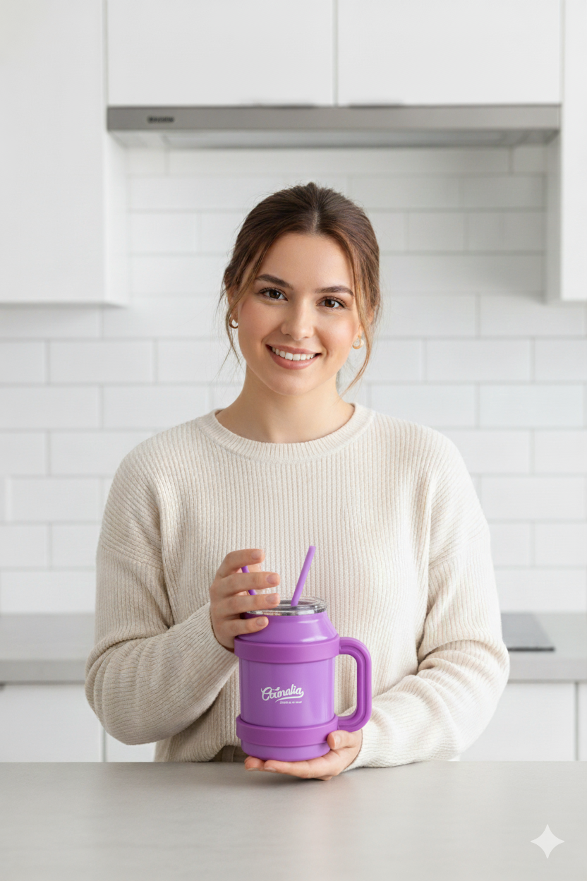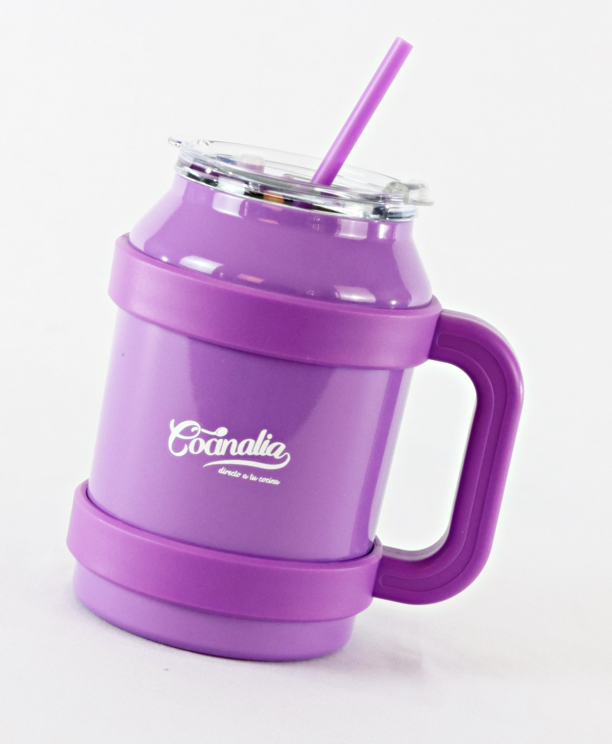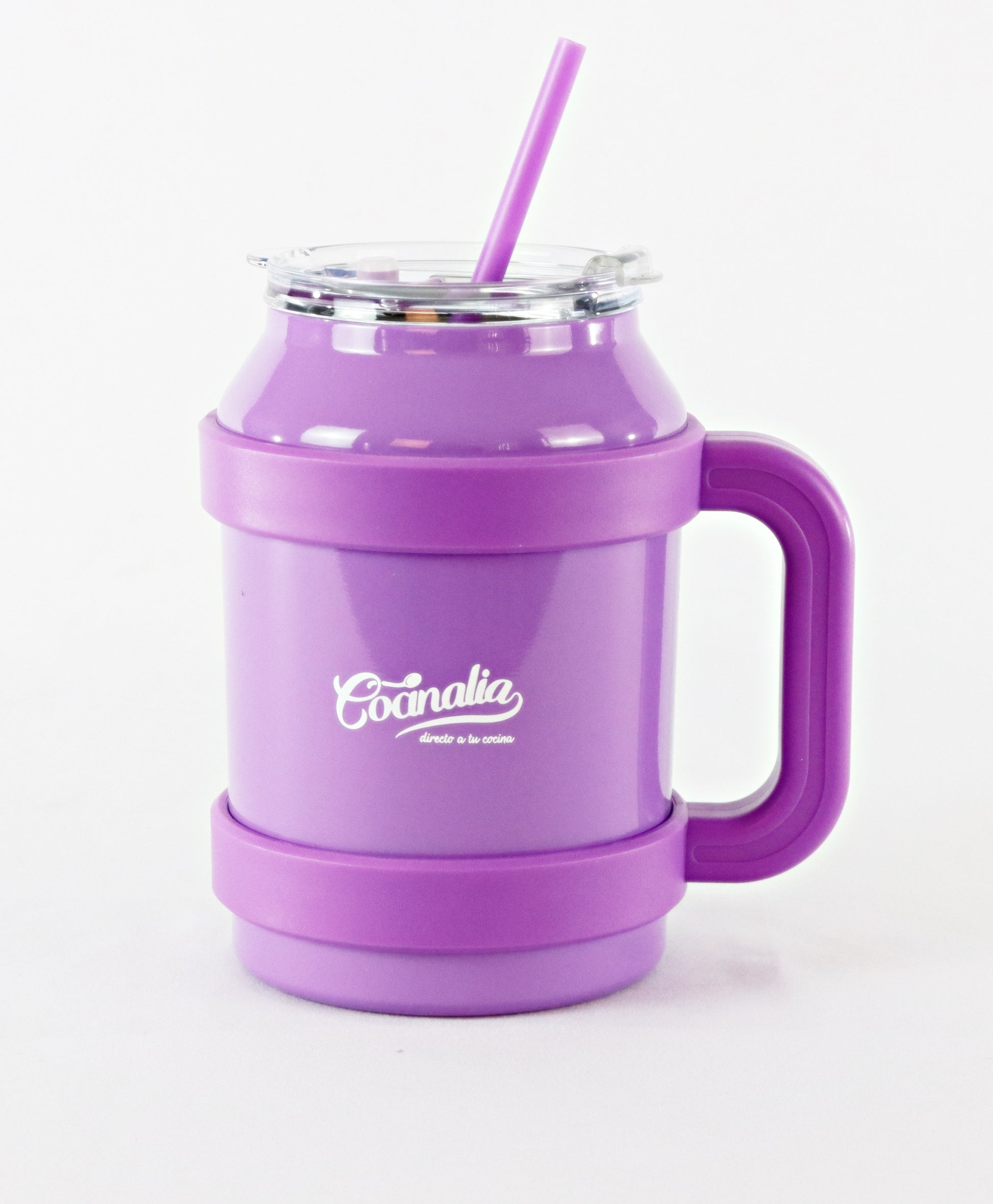 "Disfruta de tus bebidas favoritas a la temperatura perfecta con el vaso térmico Cocinalia. Fabricado con acero inoxidable de doble pared, mantiene tus líquidos fríos por 8 horas y calientes por 5 horas. Su diseño tipo tarro con una robusta asa lo hace fácil de transportar. La tapa de alta calidad evita derrames, y el popote reutilizable incluido es perfecto para beber en cualquier lugar. El color morado vibrante y el diseño moderno lo fabrican en el accesorio ideal para tu día a día, ya sea en la oficina, en el gimnasio o de viaje. Capacidad 1500ml."