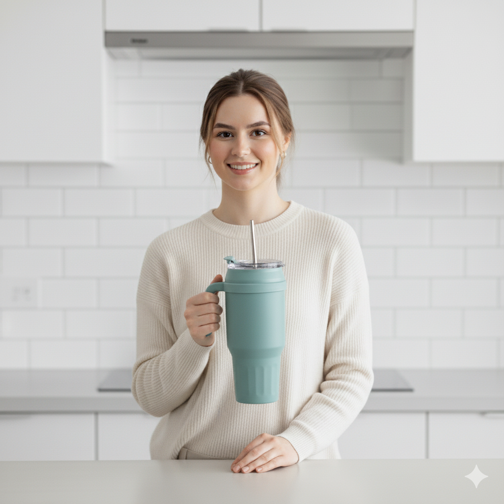 "Mantén tu hidratación todo el día con este vaso térmico de gran capacidad, perfecto para la oficina, el gimnasio o tus viajes. Fabricado en acero inoxidable de doble pared, este termo mantiene tus bebidas frías hasta por 12 horas y calientes hasta por 8 horas. Su asa ergonómica te ofrece un agarre cómodo y seguro, mientras que el popote de acero inoxidable es ideal para beber con facilidad. La tapa con cierre hermético y su diseño a prueba de derrames lo hacen el compañero perfecto para tus aventuras diarias."